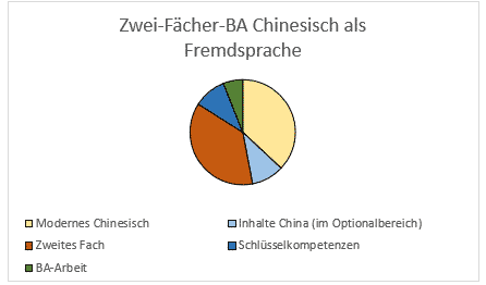 Im Rahmen eines Zwei-Fächer-BA-Studiums wird Chinesisch mit einem zweiten Fach kombiniert. Das fünfte Semester wird an einer chinesischen oder taiwanesischen Partnerhochschule verbracht.